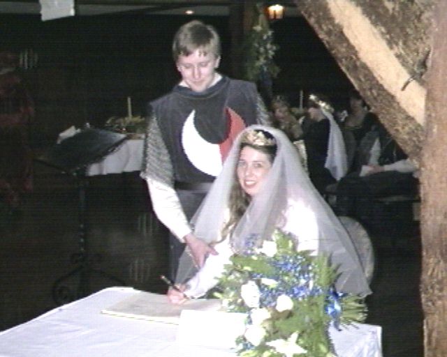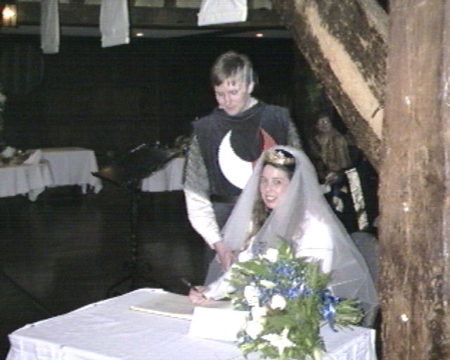 - Me and Estelle signing the marriage register