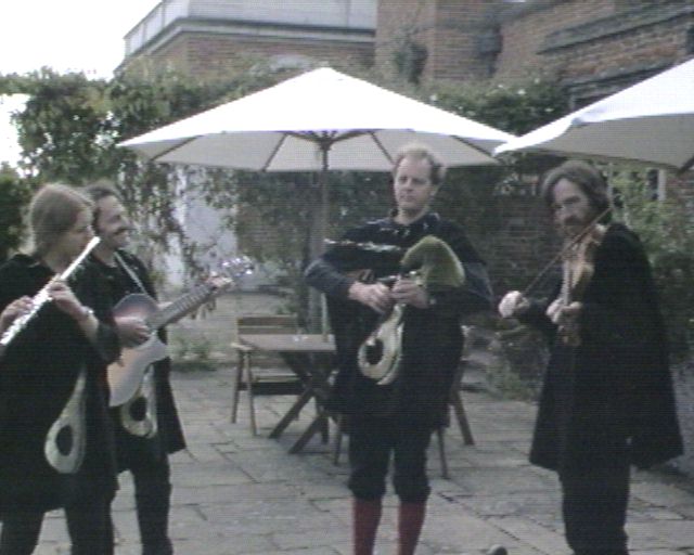 - Minstrels playing in the courtyard